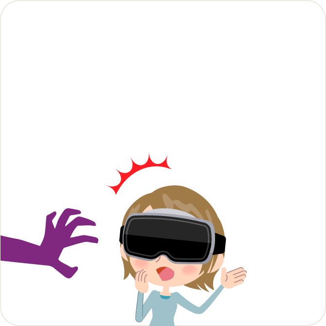 基本的にはメガネを掛けたまま楽しむ事ができますが、メガネの形状、大きさによってVRゴーグルが装着できない場合がございます。また、裸眼でゴーグルを装着された際、視力によって映像が不鮮明になりVR体験をお楽しみいただけない場合がございます。あらかじめご了承ください。