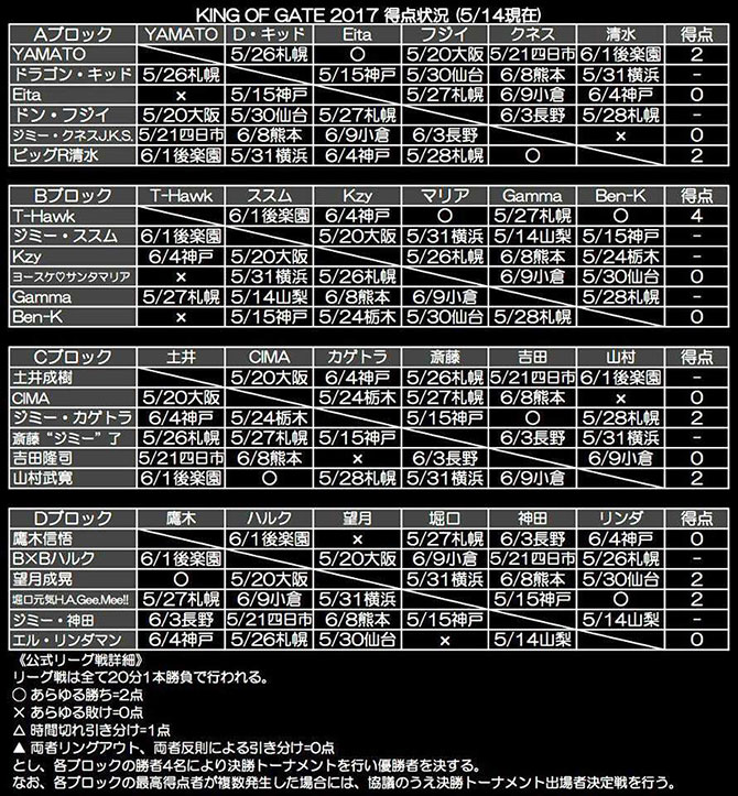 | 第4試合 KING OF GATE 2017 Aブロック公式戦 |