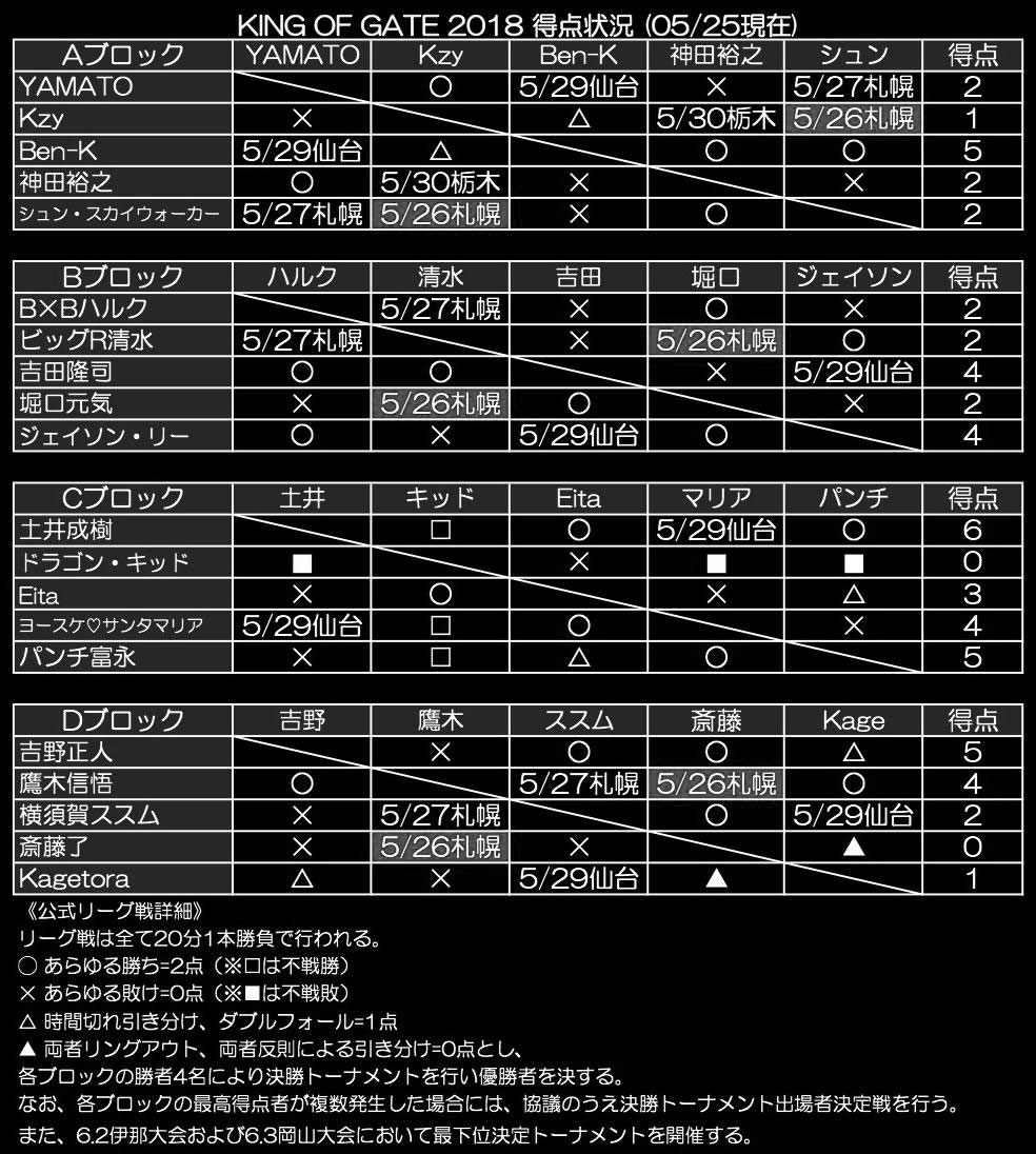 ※ヨースケ♡サンタマリア選手のKING OF GATE の得点は、負傷欠場により途中辞退の同ブロック=ドラゴン・キッド選手からの不戦勝を含みます。