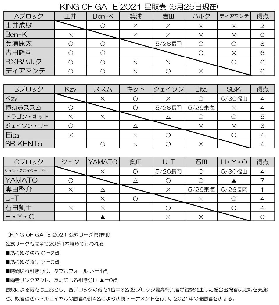 | 第2試合 KING OF GATE 2021 Aブロック公式戦 |
