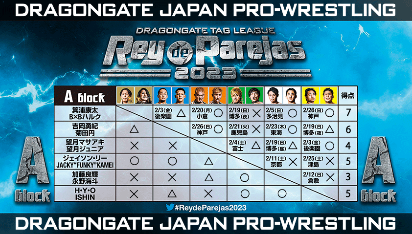 ・Aブロック=1位:箕浦康太&B×Bハルク(7点)/2位=:吉岡勇紀&菊田円(6点)