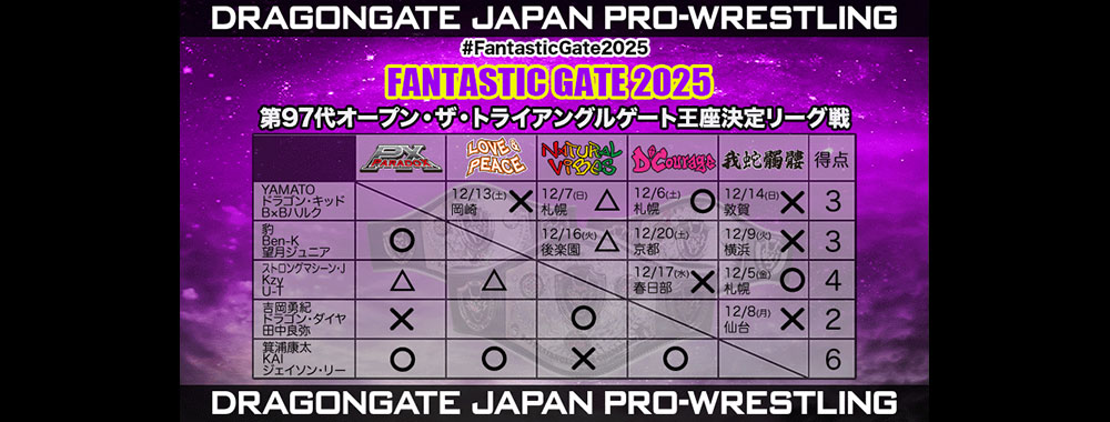 | メインイベント 第97代オープン・ザ・トライアングルゲート王座決定リーグ戦 |
