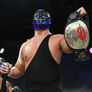 デビューから約3カ月でオープン・ザ・トライアングルゲート王座に戴冠したストロングマシーン・J選手。