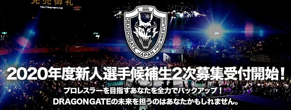 DRAGONGATE株式会社では、2020年度の新人選手候補生募集について応募締切後も多くのお問い合わせをいただいたことから、急きょ以下のとおり2次募集の受付を実施することとなりました。募集期間が短いため、ご応募はお早めに!