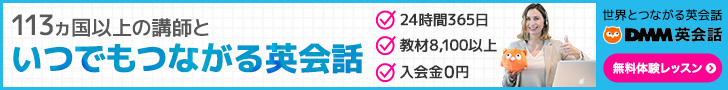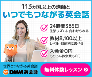 ![]() ![]() DMM英会話 | 無料体験レッスン2回 初月50%OFF | 1レッスン:163円~ | 世界中の好きな国籍の講師が選べる マンツーマン | 2020年のオンライン英会話サービス評価・満足度調査で16部門でNo.1を獲得 |