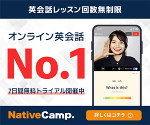 ![]() ![]() ネイティブキャンプ | 7日間無料体験 Amazonギフト券5,000円分プレゼント中!(9月30日まで) | 1,980円(税込)~ レッスン回数無制限 | 世界120ヵ国以上の講師 マンツーマン | レッスン回数無制限 カランメソッド |