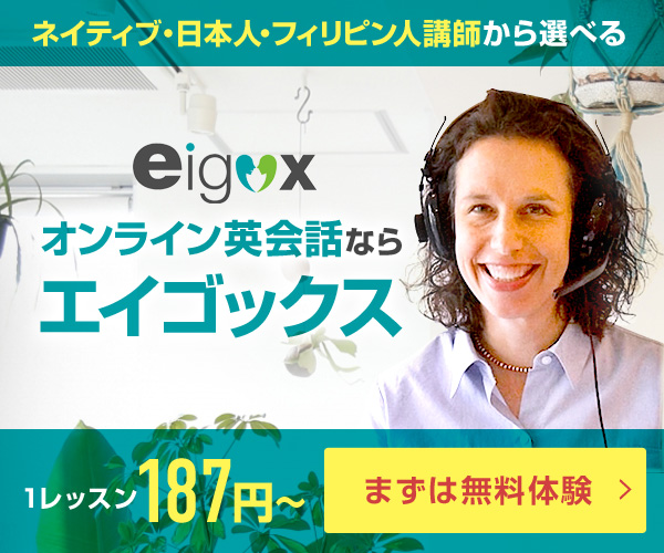 ![]() ![]() エイゴックス | 無料体験レッスン実施中 | 1レッスン:187円~ 月額2,178円~ | ネイティブ・フィリピン・日本 マンツーマン | ネイティブ講師の過半数は資格取得済み TOEIC対策・英検対策可能 |