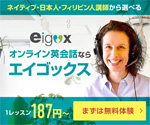 ![]() | 無料体験レッスン実施中 エイゴックス | ネイティブ講師の過半数は資格取得済み TOEIC対策・英検対策可能 | 1レッスン:187円~ | ネイティブ・フィリピン・日本 マンツーマン |