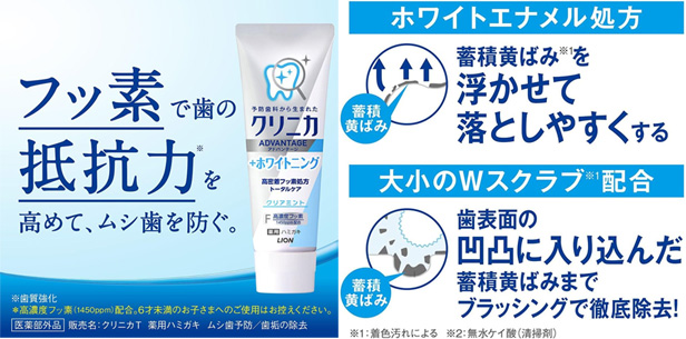 ![]() | AD1KT クリニカ アドバンテージ +ホワイトニング | 4.4 | 989円 Amazon | 楽天市場 | Yahoo! | 130g | 医薬部外品 | 虫歯予防、ホワイトニング、歯垢除去 | クリアミント | ポリリン酸Na、フッ化ナトリウム(フッ素として1450ppm)、テトラデセンスルホン酸Na |