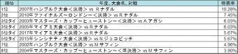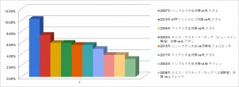 1位は10.28%の得票率を獲得した「2007年 ハンブルク大会決勝 vs R.ナダル」!