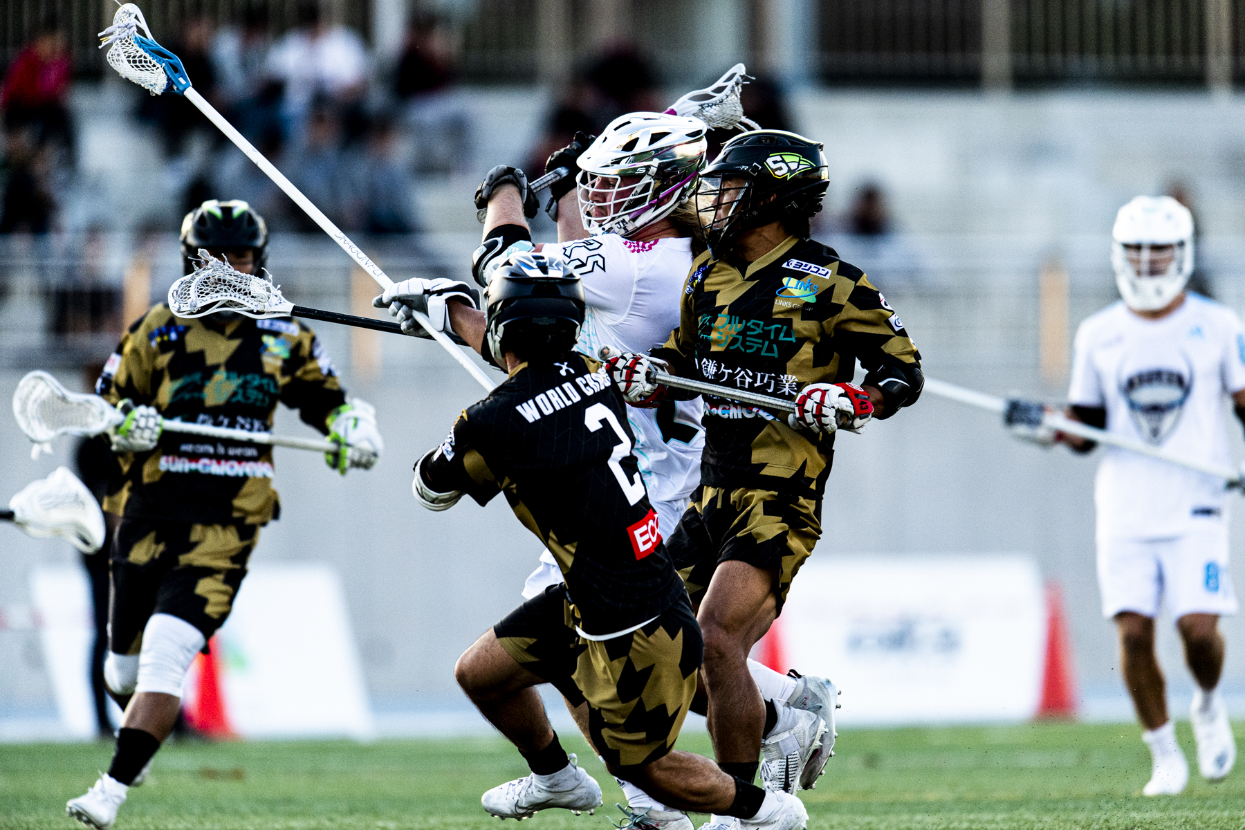 時速160kmを超える高速シュートが飛び交う「地上最速の格闘球技」ラクロス。現在、日本のラクロスチームは約350チーム、競技人口は約13,500人になっており、毎年チーム数も増加しています。2022年7月に米国・アラバマ州で行われた世界大会「第11回ワールドゲームズ」では、6人制競技のSIXES(シクシズ)で史上初めて、男子日本代表が銅メダルを獲得しました。
