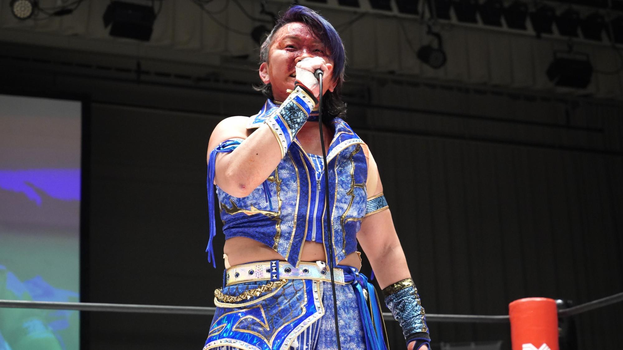 試合後、引退を発表した加藤園子(2025.4.13後楽園ホール)