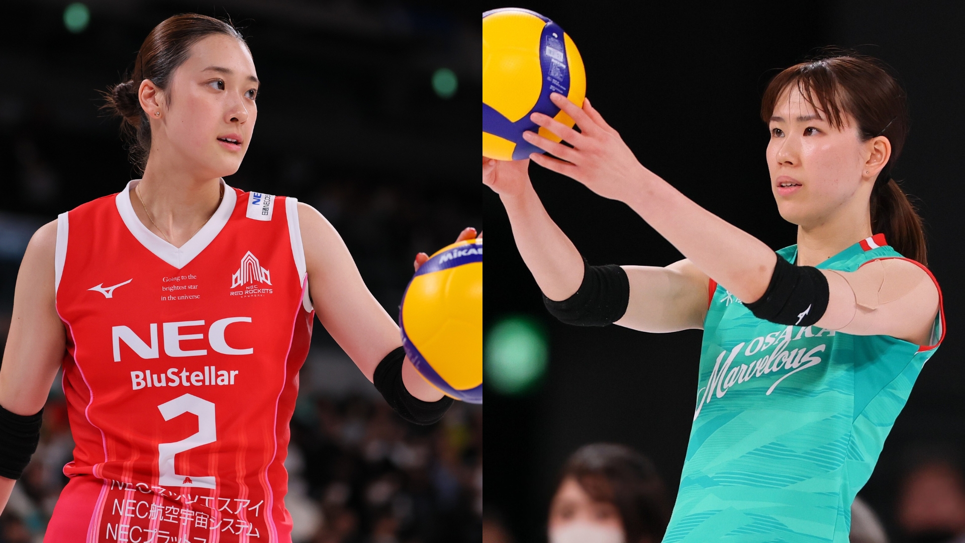 (NEC川崎・佐藤淑乃/大阪MV・林琴奈 ©SV.LEAGUE)