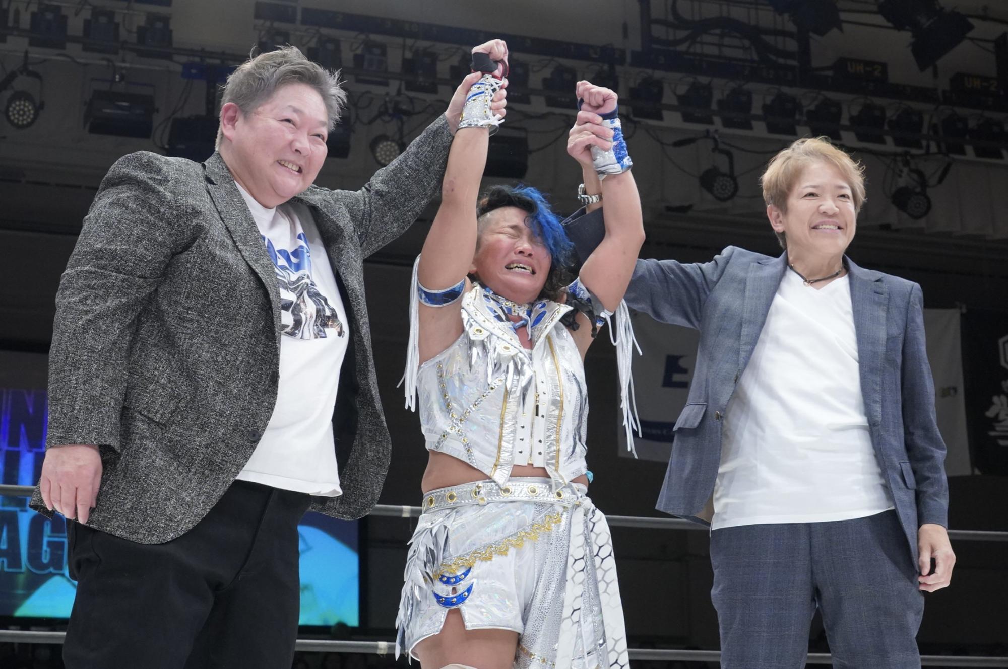 引退セレモニーには、加藤選手が憧れ続け、プロレスラーを目指すきっかけとなった、『クラッシュ・ギャルズ』長与千種さん・ライオネス飛鳥さんが登場。長与さんからは「プロレスラーになってくれてありがとう」と労いの言葉が贈られました。