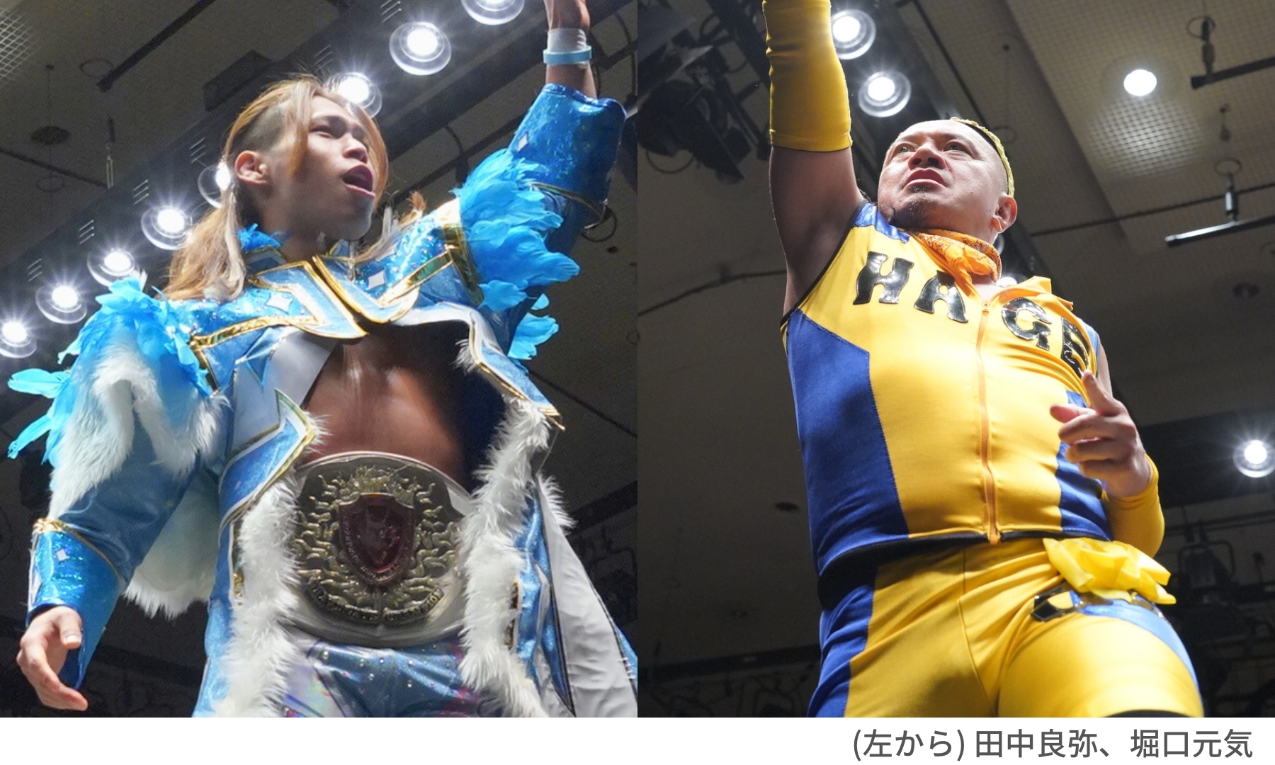 第4試合は、体重82kg以下の中軽量級選手による「オープン・ザ・ブレイブゲート選手権試合」。王者・田中良弥選手に挑むのは、次期挑戦者決定戦を制したベテランレスラー・堀口元気選手です。田中選手にとっては8度目の防衛戦。勢いそのままに防衛ロードを歩み続けるのか、それともキャリア25年を超えるベテラン堀口選手が戴冠するのか!?