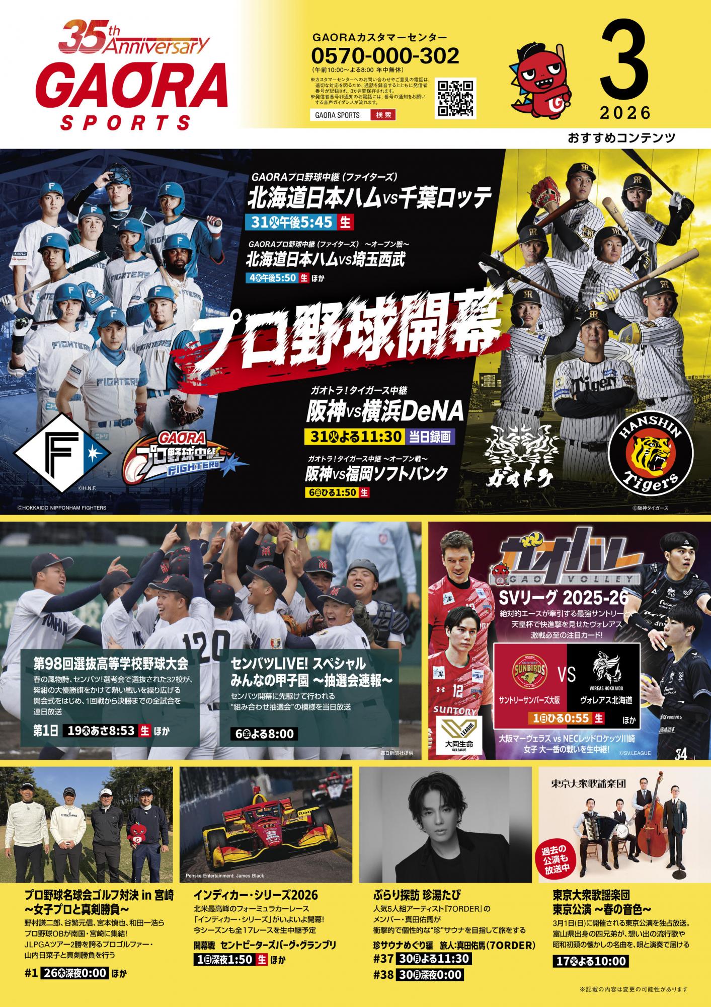 GAORA SPORTS 3月のおすすめ