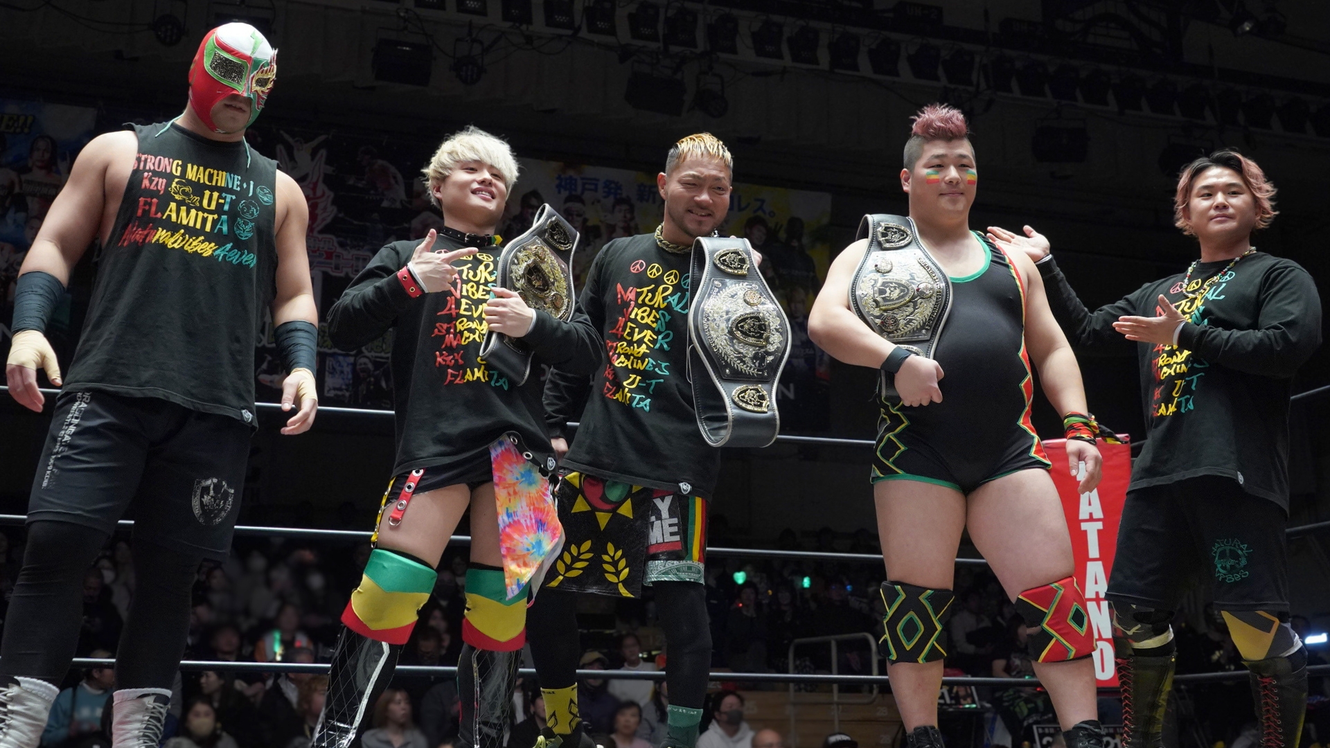 NATURAL VIBES((左から)ストロングマシーン・J、GuC、Kzy、@KEY、U-T)