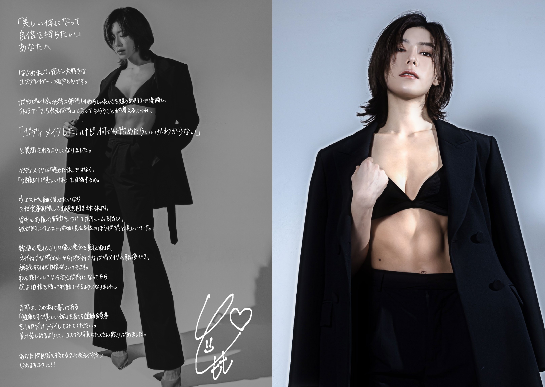 フィットネスモデル・女優・コスプレイヤー・SAVASアンバサダー。172cm、8.5頭身の肉体美と端正な顔立ちで人気キャラのコスプレや「男装&女装」の対比ツイートは万バズ多数、ボディメイク大会の優勝経験あり。