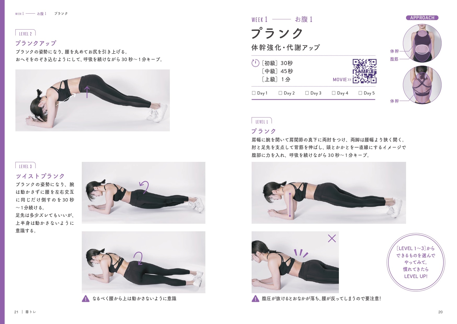 4週間に分けてレベル・部位別のトレーニング・マッサージができ、QRコードの実践動画で著者と一緒にトレーニングできる「推し活トレーニング」で挫折防止します。