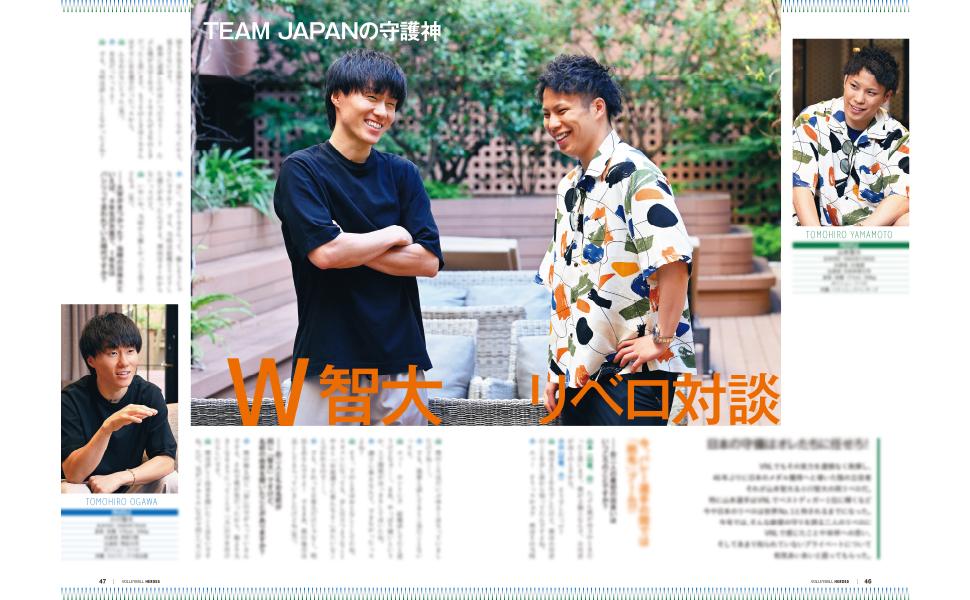 VNL(ネーションズリーグ)でも、その実力をいかんなく発揮し、銅メダル獲得の陰の立役者といえるのが、山本智大&小川智大の両リベロ。日本代表として戦い続ける二人のリベロに、VNLで感じたことやW杯への思い、そしてあまり知られていないプライベートについてまで、さまざまなお話を伺いました。同ポジションでありながら、とても仲の良い二人だからこそ、ぶっちゃけトークで盛り上がった対談です。