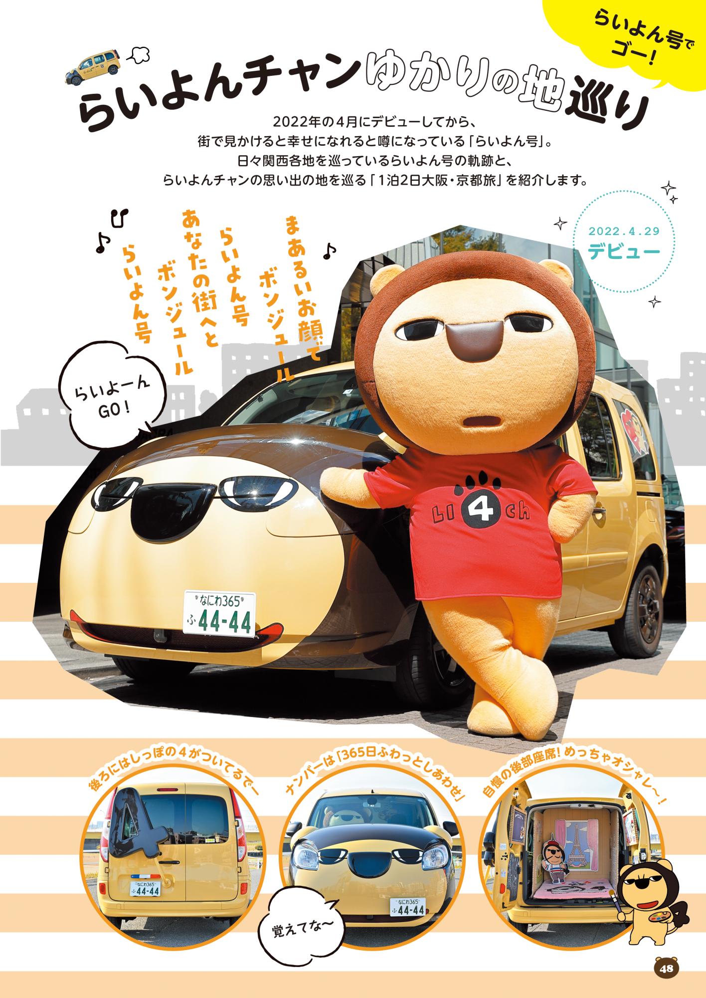 かわいくて、くすっと笑える写真ページや、20年の歴史をまとめた「年表」、らいよんチャンのある1日に密着取材、どのページにもらいよんチャンの魅力をたっぷり詰めこんだ、記念ブックにふさわしい、見応え十分な内容になっています。