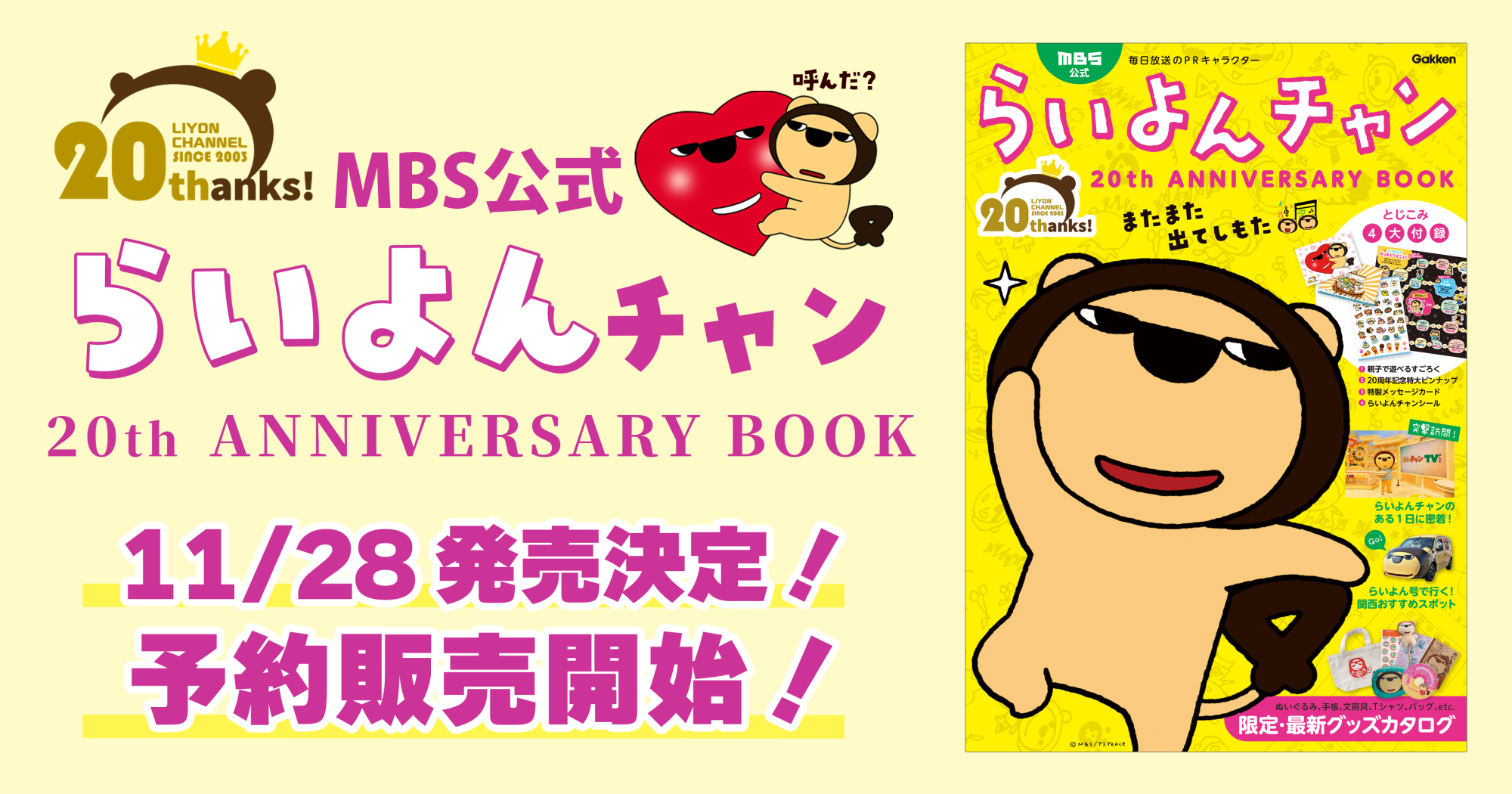 らいよんチャンのデビュー20周年を記念して、公式ファンブック『MBS公式 らいよんチャン 20th ANNIVERSARY BOOK』予約販売を開始!