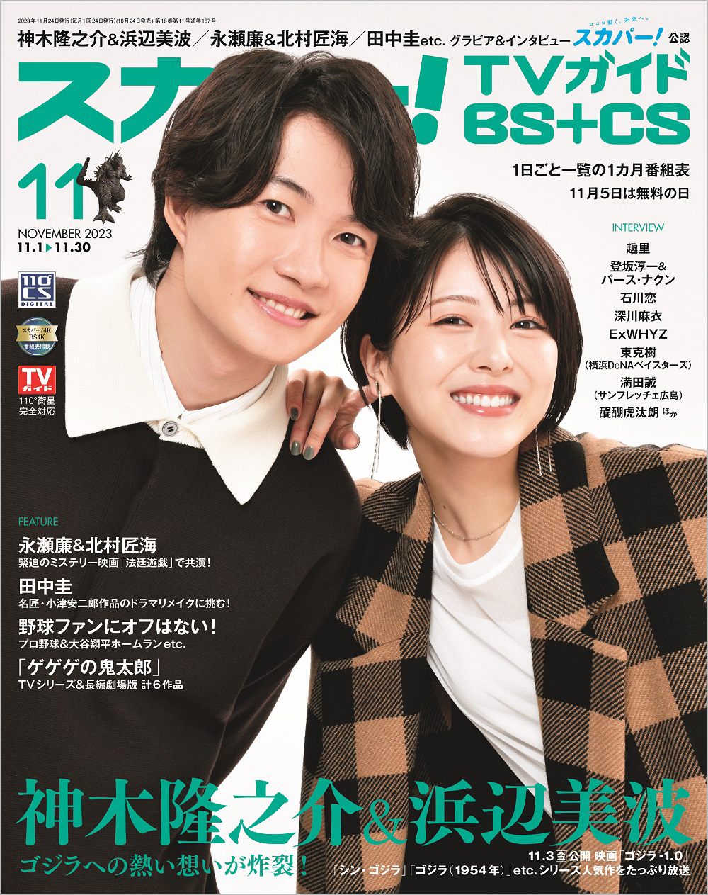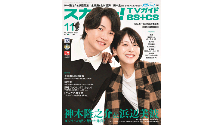 神木隆之介&浜辺美波が表紙を飾る「スカパー!TVガイドBS+CS2023年11月号」が、10月24日に発売。