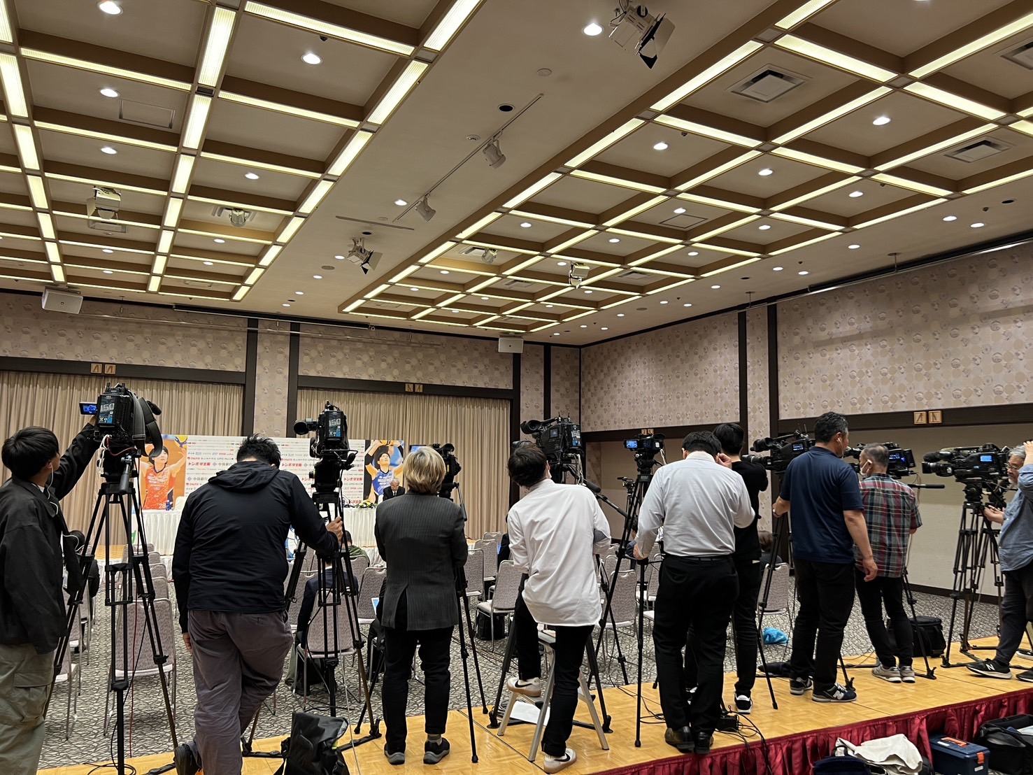 GAORA SPORTSスタッフも現地へ。地元・岡山を中心に15台のカメラと30人以上の報道陣が詰めかけていました。ふたりがいかに地元に愛されていたかがわかりますね!