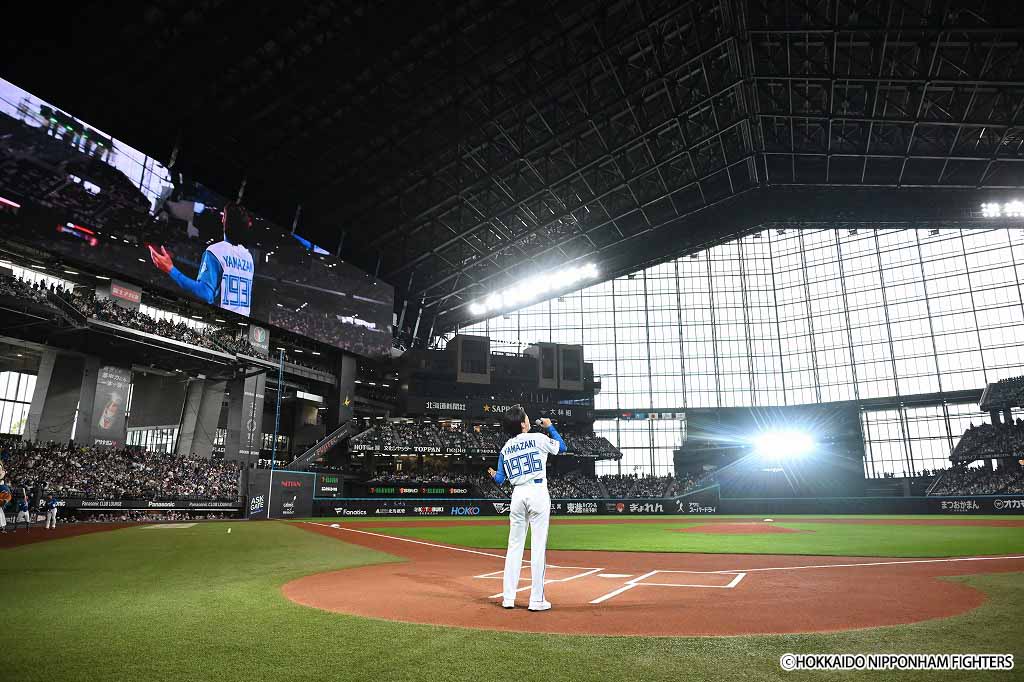 6月11日(火)にエスコンフィールドHOKKAIDOで開催の「北海道日本ハム vs 中日」戦では、ミュージカル俳優の山崎育三郎さんが試合前、ファイターズのユニフォーム姿で颯爽と登場し、客席に向かって投げキッス。