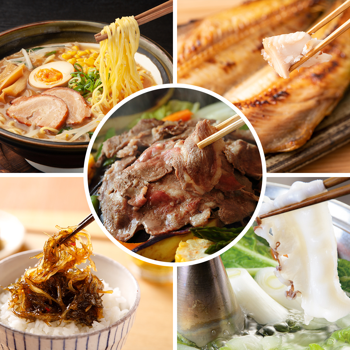 ※「ラーメン」「ジンギスカン」「ほっけ」「たこしゃぶ」「松前漬」