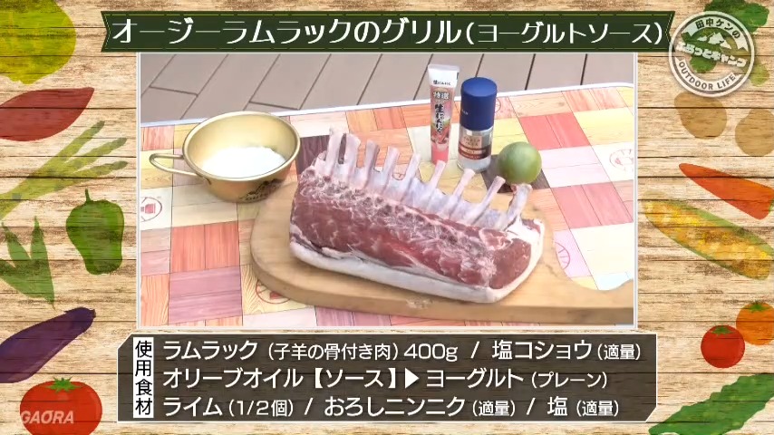 田中ケンのふらっとキャンプ レシピ公開~オージーラムラックのグリル(ヨーグルトソース)~