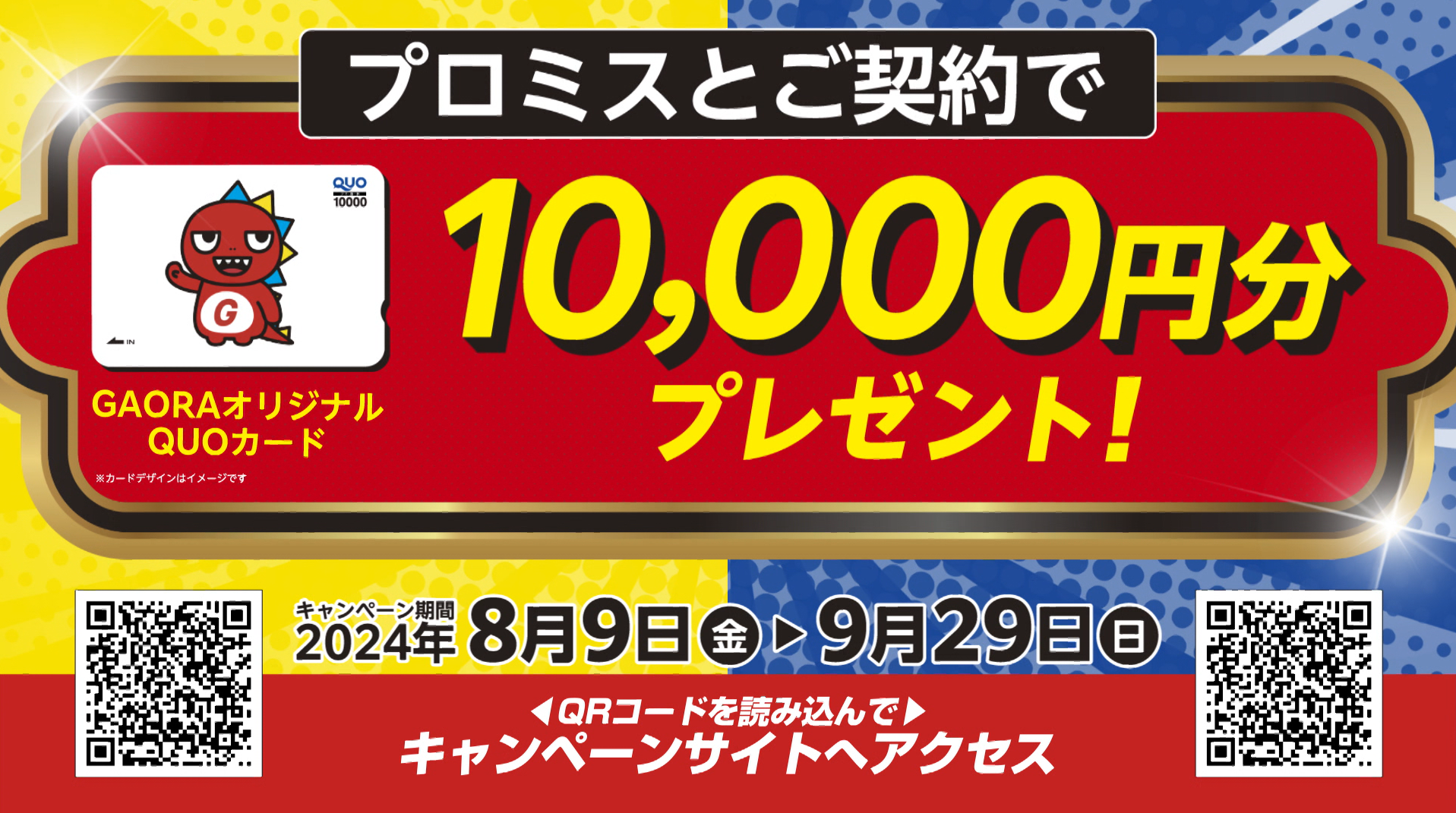 ご契約いただければGAORAオリジナルQUOカード(10,000円分)がもらえる!