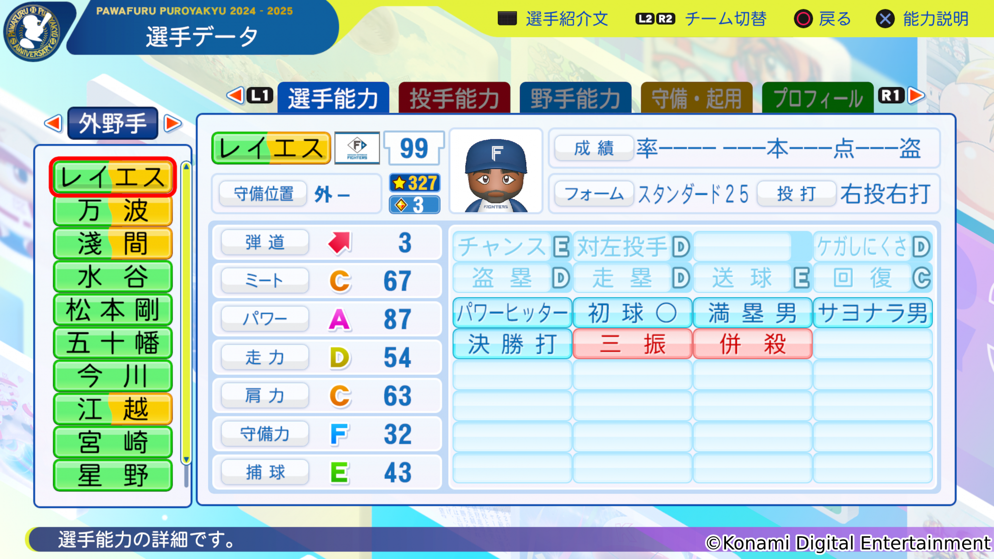 今回のアップデートで、井上温大選手(巨人)のフォークの変化量が「2→4」、近藤健介選手(福岡ソフトバンク)のミートが「B75→A80」になるなど、最新の選手データで遊べるようになる。