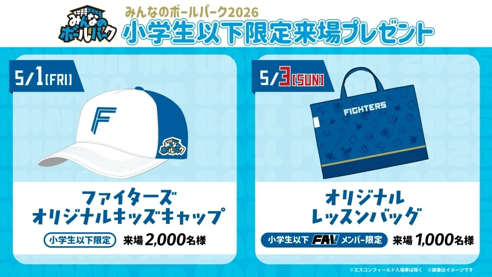 5月1日: 小学生以下2,000名に「ファイターズオリジナルキャップ」