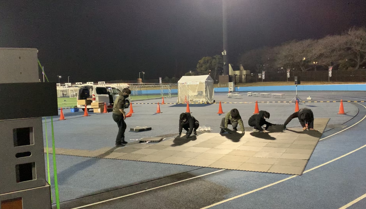 ジョイントマットを敷く作業。(※別イベントの写真になります)